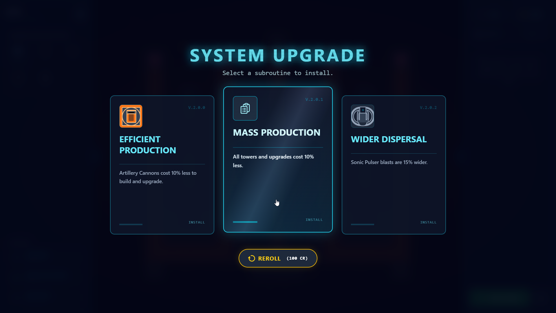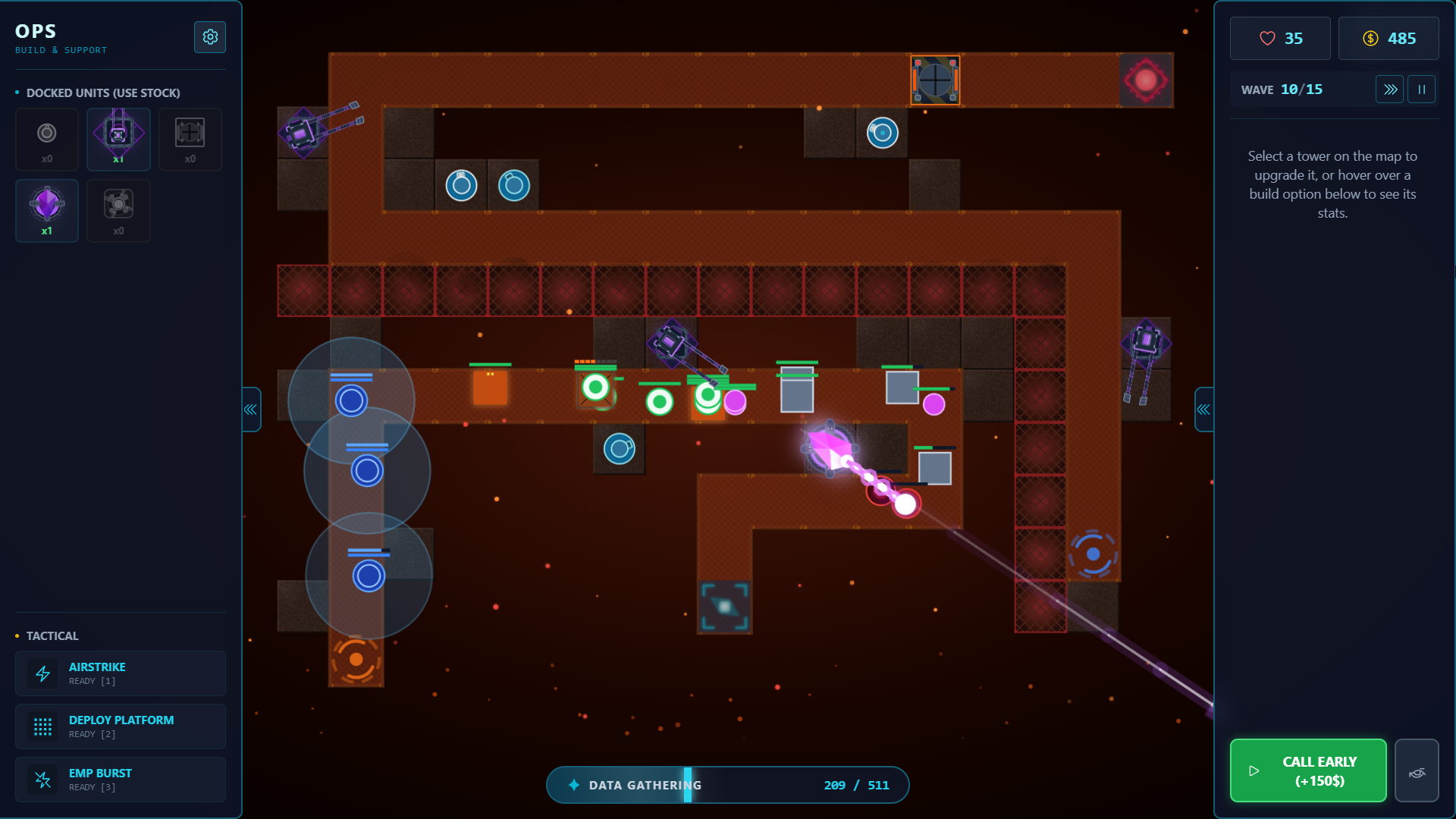 - WIP - Mainframe is roguelite tower defense, with the aesthetic of a cyberpunkish style